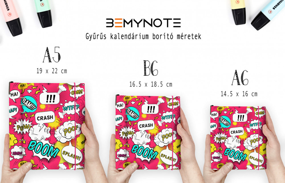 A borító különlegessége, hogy félbe hajtható teljesen, mint egy spirál füzet, így kis helyen is elfér és asztal nélkül is használható, írható.