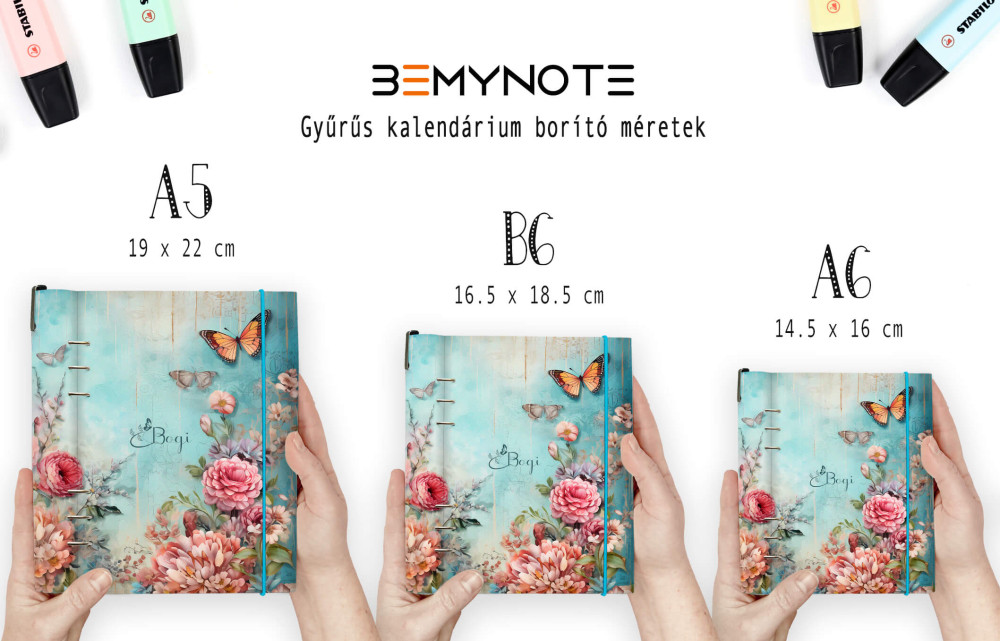 A keményfedelű borító műbőr jellegű, kellemes tapintású és különleges, ráadásul a gyűrűs notesz borítója személyre szólóvá is tehető, mert névvel vagy felirattal is megrendelheted. A felirat is pillangós, kreatív betűtípussal kerül a borítóra.
